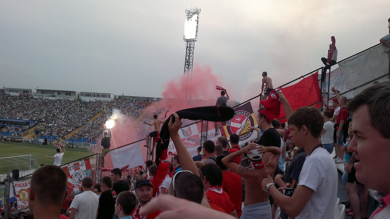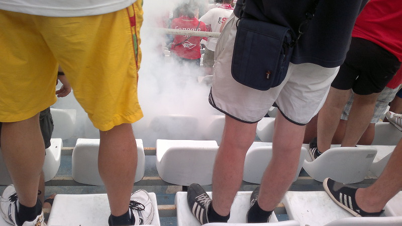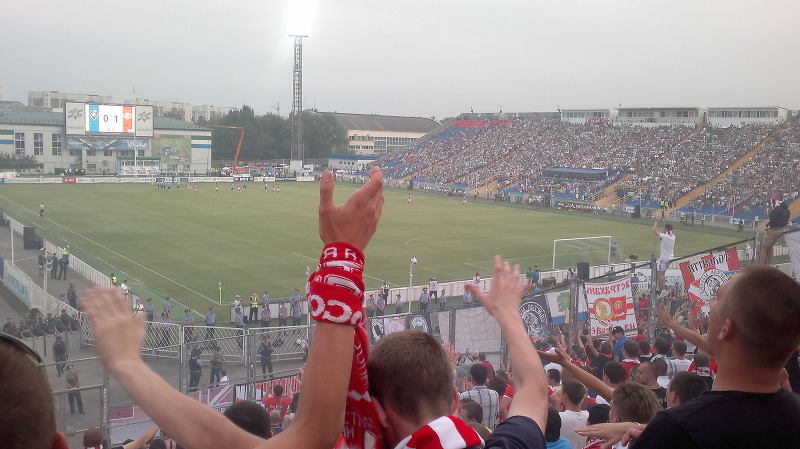 Команда наша, как вы знаете победила со счетом 1:2 и, в принципе этой информации также достаточно в плане статистики, но вот гол в наши ворота я уже не видел, пришлось выписываться со стадиона раньше положенного срока, так как нужно было успеть на поезд. Как ни прискорбно наблюдать наши трибуны со стороны, но пришлось пойти на этот шаг - ничего не поделаешь: