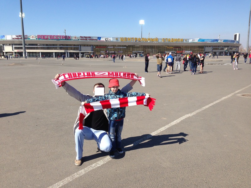 Тем не менее, за сутки до игры настроение мое было просто супер. Не смотря на то, что большинство фанатья уехало в Казань еще в пятницу 18-го, я решил провести субботу с большей пользой – с утра всей семьей сходили в церковь, осветили кулич и яйца, погуляли во дворе, потом сходили в кино на премьеру мульта ”Реальная белка” и только после этого стали собираться на мячик. На этот выезд, как и на несколько предыдущих я решил ехать со старшим сыном, который с большим удовольствием подключается к этой романтике и ровно в 18:00 мы с ним вышли из дома: