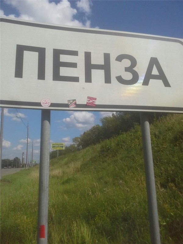 Третий день - это как раз день выезда в Пензу. Туда меня вез мой двоюродный брат Максим. Выехали из дома в 10 утра, а из города в 11, т.к. нужно было закупиться в дорогу и помыть машину. Дорога прошла быстро и без приключений, я ставил ему свои любимые группы про которые он даже не слышал: ILWT, Тараканы!, Shootki, Яйцы Фаберже ну и многое другое. При въезде в Пензу было наклеено парочку стикеров Великого и Могучего, а дальше мы стали искать моих Торпедовских друзей. Где-то около получаса прошло пока мы друг с другом нашлись, и это при том что я был с братом на машине. Затем мы поехали на вокзал, закупили магнитиков и стали думать что делать дальше до мячика. Недолго думая отправились на берег реки Сура, которая и протекает в данном населенном пункте, по пути заехали в магаз, взяли еды и напитки, кто что желал выпить, но без крепыша, т.к. погода была жарковатой для сорокоградусных напитков. Проведя под веселые песни и разговоры два часа, а мой брат даже успел за это время поспать, мы отправились на стадион. Приехав в кассу, нас сразу отправили через какие-то дебри в другую часть стадиона, т.к. у меня не было паспорта, то меня и брата на Московский сектор не пустили, пришлось за 50 рублей купить билет, которых уже не было, видимо не ожидали такого ажиотажа, и как итог на выдали за место билетов программки. По программкам пошли на сектор Пензюков. Шиза у них так себе, в принципе и Торпедонов было немного. Игра была томной и итог 3-0 в пользу Пензенского зенита. После матча мы забрали моих знакомых и отвезли на вокзал, попрощавшись они двинули в сторону толи Нижнего Новгорода, толи Владимира, а мы с братом назад в Рассказово.