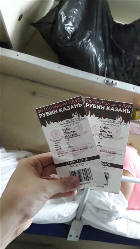 На выезд в Казань задумали ехать на так давно, примерно за месяц до матча. Изначально планировали ехать вчетвером на авто, но перед самым выездом двое "слились" и в срочном порядке пришлось покупать билеты на плацкарт, туда и обратно. Выехали в пятницу, естественно с казанского вокзала, где-то около 8 вечера. Попутчики достались нам прям скажем "не комильфо" - 2 бабушки, причем одна с ребенком, возраст ребенка примерно равен тому количеству времени сколько М.Якин был у нас гл.тренером, да еще и 2 верхних места нам досталось, теперь Вы понимаете как нам было весело