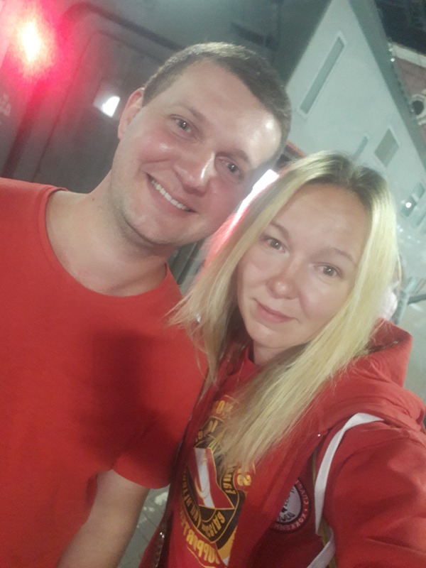 Досмотр был абсолютно лайтовый, проход на сектор тем более. Ни одного стюарда, вписаться без билета без проблем. Захожу на сектор, слышу «Ааааааа, ты была бы не ты, если бы не приехала!» Это Дима Мурманск с Максом. Традиционное фото и я, наконец, успокаиваюсь. Все было не зря – я на секторе!