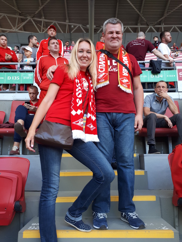 С Димой Ляпустиным и его друзьями мы снова собрались в том же составе, что и в Казачьем хуторе, прям захотелось заказать шашлычка, но, к сожалению, даже безалкогольного пива на стадионе не продавалось. Я похвасталась, что пробиваю 75-тый выезд, а Дима сообщил, что у него тоже круглая дата – 25!!!