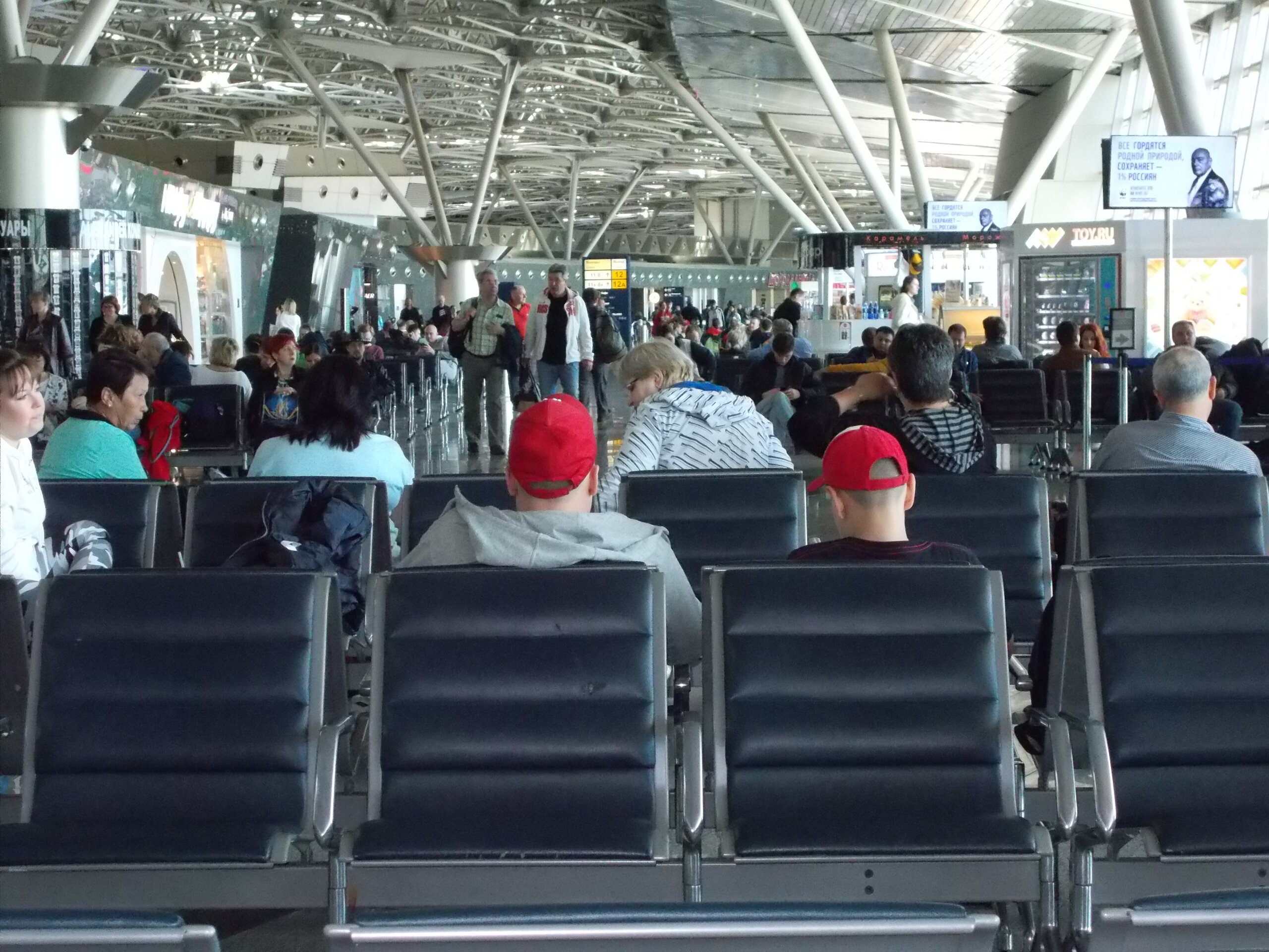 Красные шапочки в зале вылета – один из косвенных признаков начавшегося выезда.