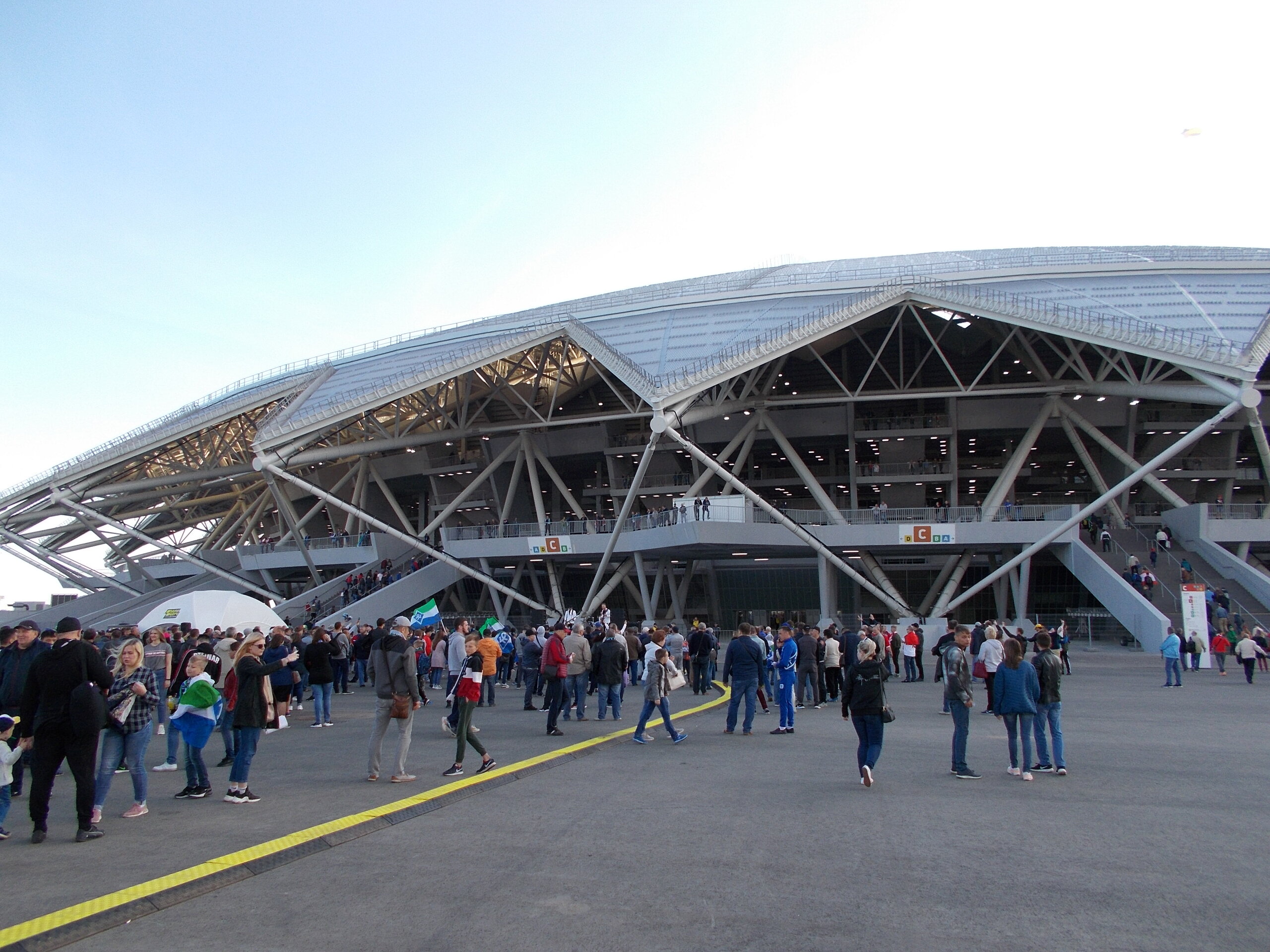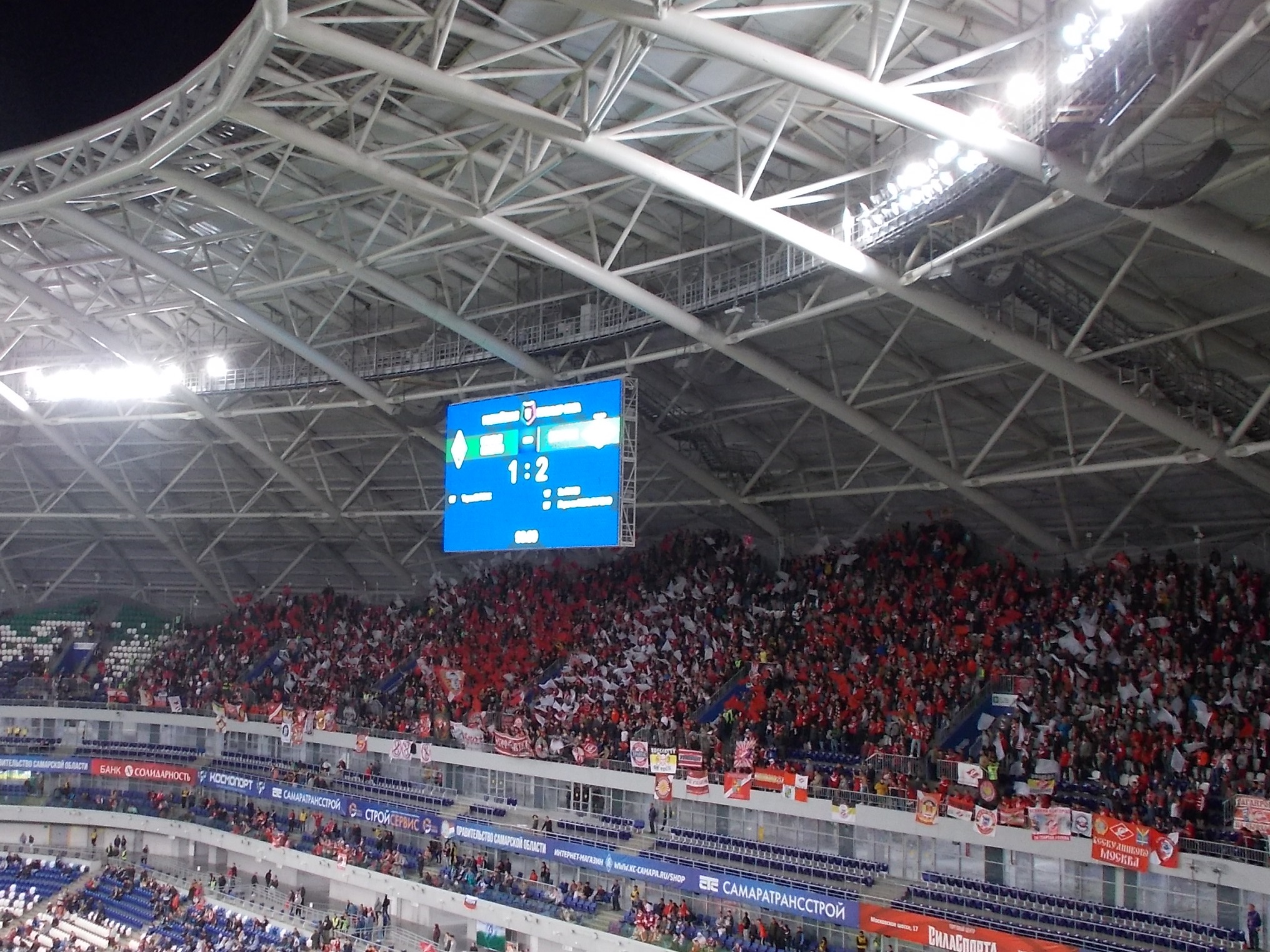 Не помню, по какой причине, но на этот раз мои места оказались тоже на верхотуре. Отсюда хорошо читать рисунок игры, но сложно прочувствовать свою причастность к ней. Слишком далеко от футбола.