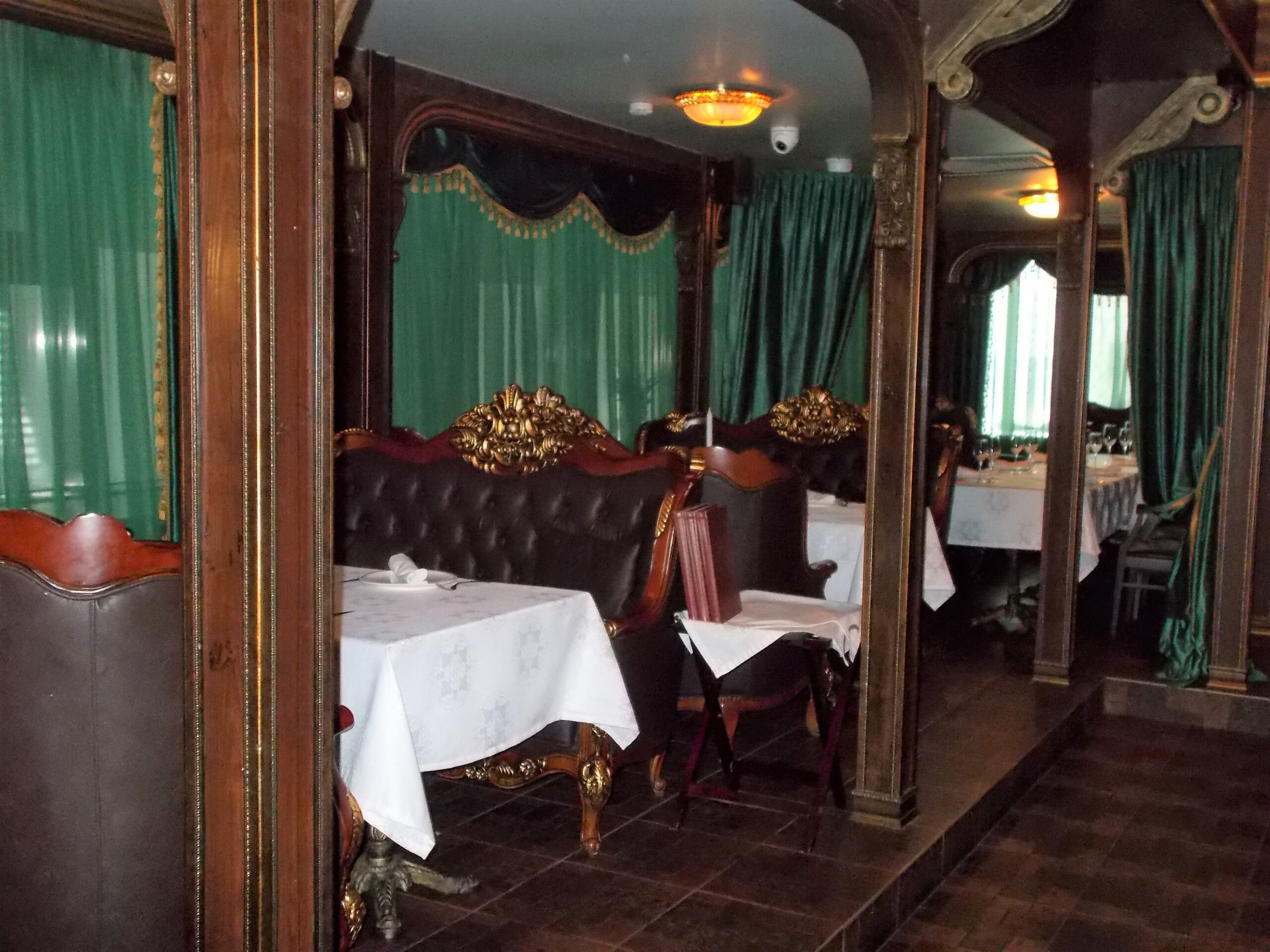 Оказалось, это стильное и довольно роскошное заведение. По крайней мере, в моем понимании. Белые скатерти, бархатные ламбрекены с кистями, позолота, дорогое меню…