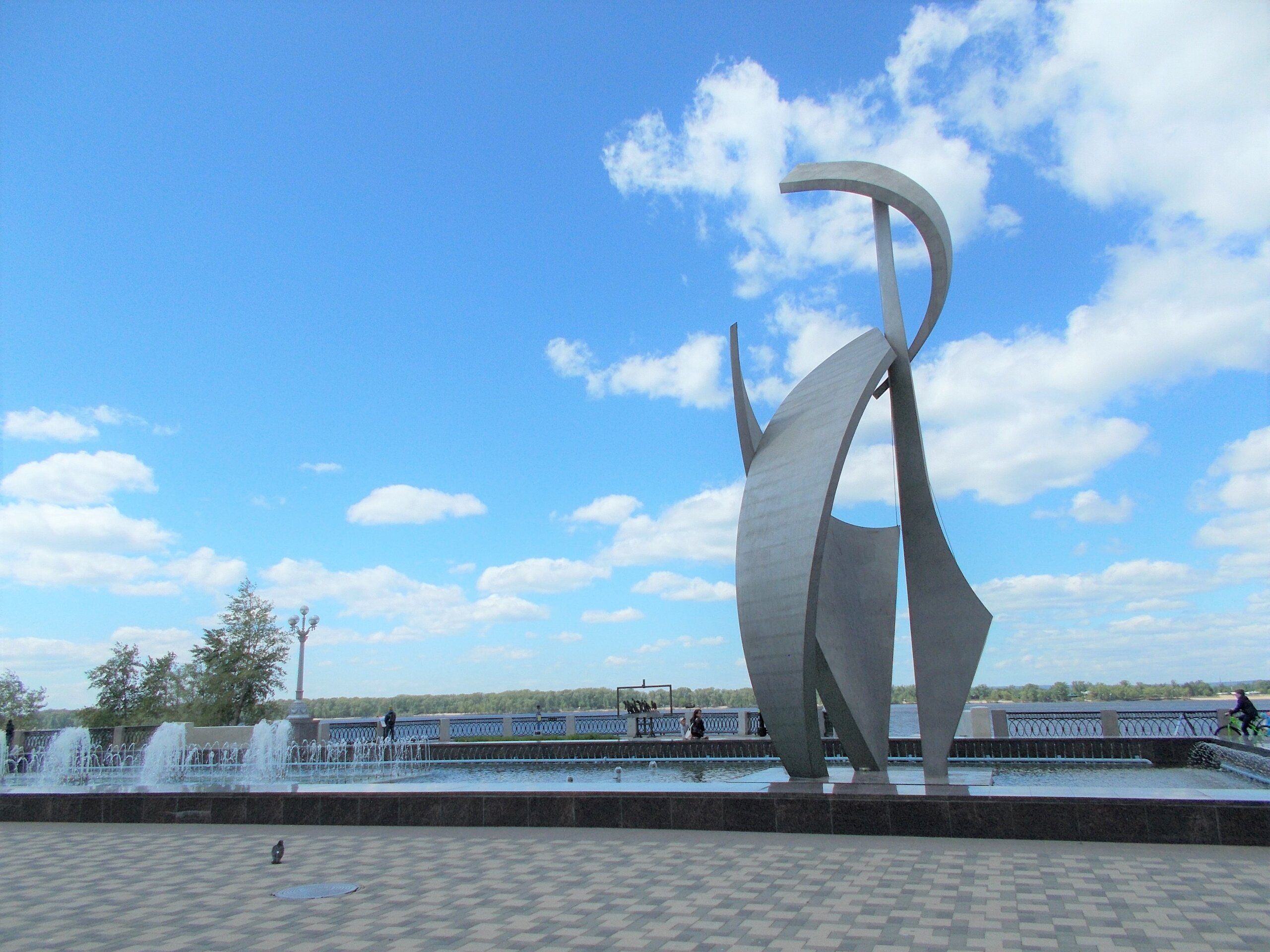 Фонтан "Парус" с высотой струи около 13 метров, созданный к 400-летию Самары, стал одним из символов города.