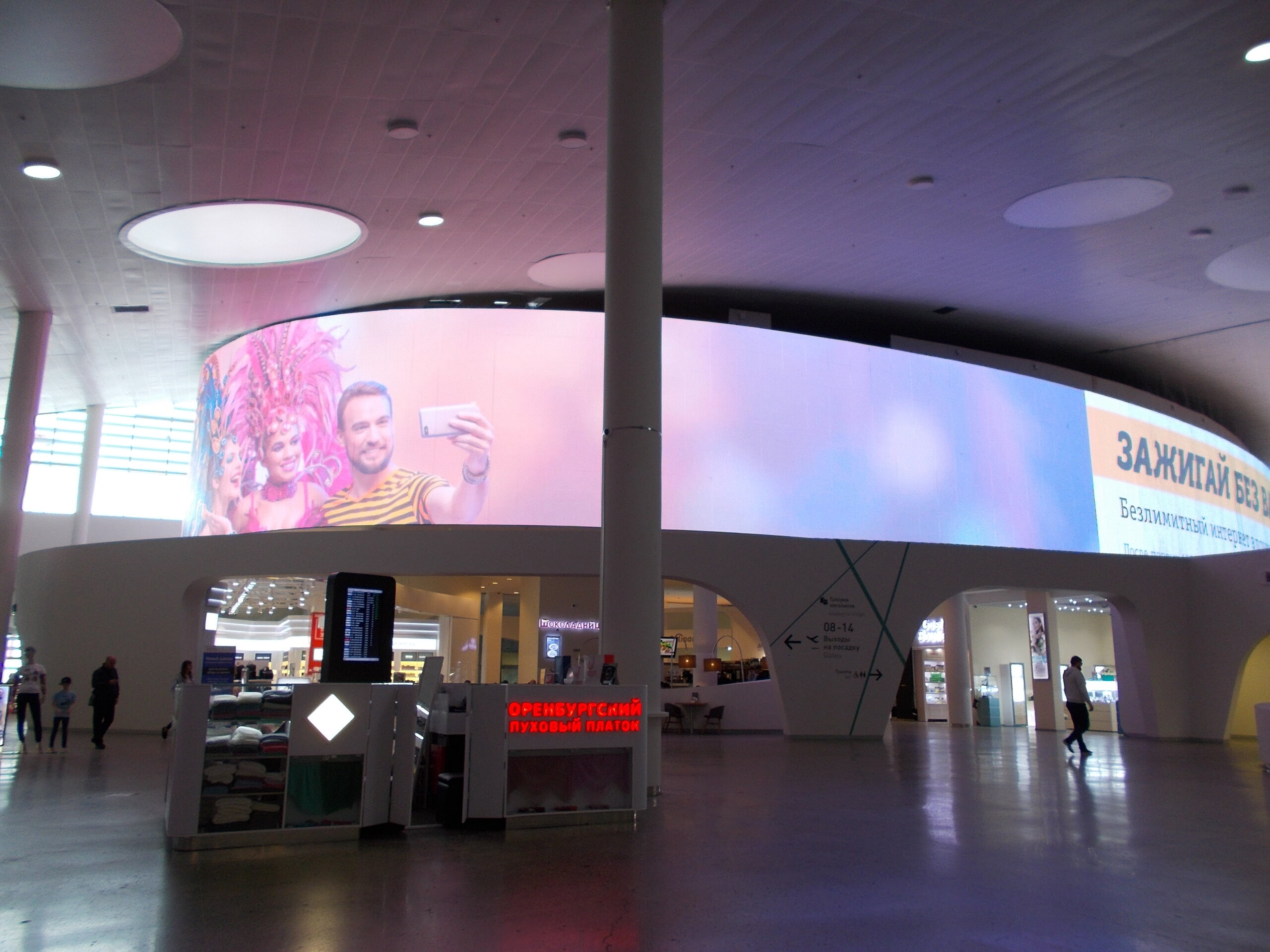 "Оренбургский пуховый платок" это первое, что бросается в глаза при входе в зал ожидания.