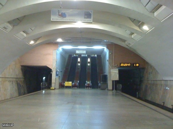 Был пятничный вечер, 23:20, но на станции были только трое нас и спящая дежурная по эскалатору. Поезда ждали минут 15