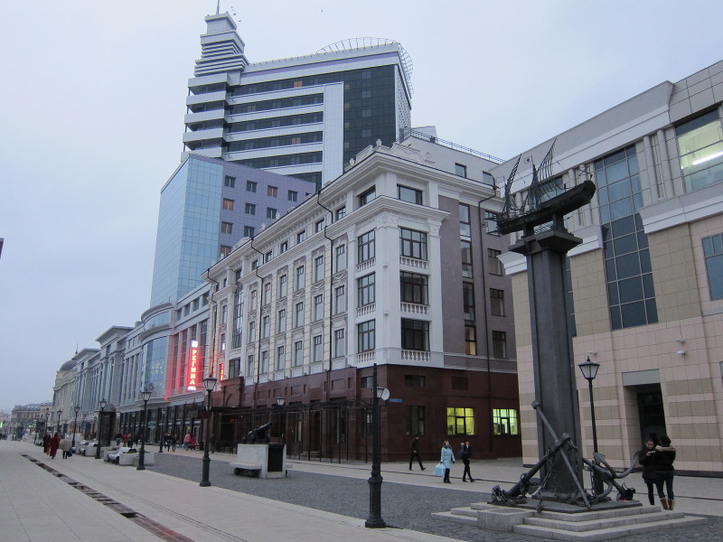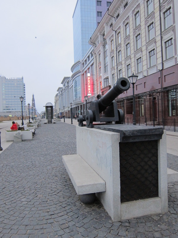 Я уже было подумал, что мне опять, как и в Махачкале, предстоит ночью культурная программа в виде религиозных песнопений, но окна номера выходили в другую сторону, а потому спал совершенно спокойно. Двухместный номер состоял из кухни, комнаты, совмещенной ванны и туалета, а в придачу ко всему перечисленному ещё и кладовкой с вешалкой для одежды. За всё удовольствие мы платили в сутки по 600р. каждый. Пообедали и отправились в центр на поиск экскурсий. На Болгар ничего не было, Свияжск разобрали до нашего прихода. Культурная программа подвисала. Тусоваться все дни в Казани совершенно не хотелось. В итоге, изрядно поколебавшись, взяли билеты на Елабугу.