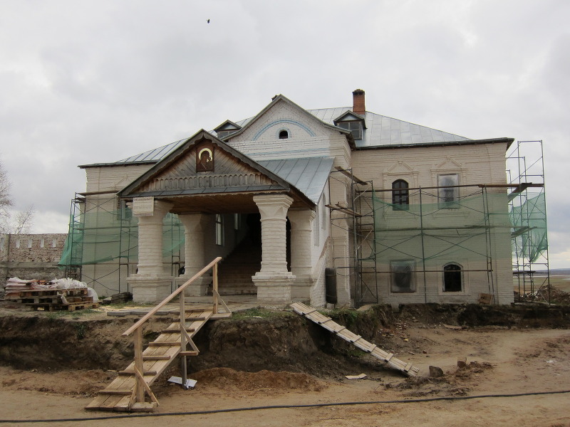 Прибыв в Свияжск мы обнаружили, что там идёт реставрация. По острову ходят рабочие, везде строй материалы, где то вырыто, что то разобрано и горы грязи. Вид как на парадной картинке тут будет не скоро.