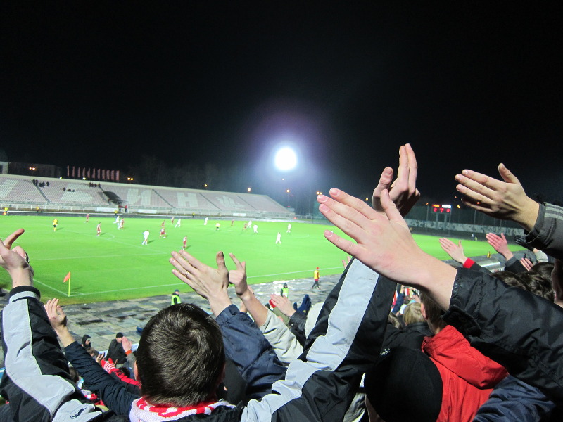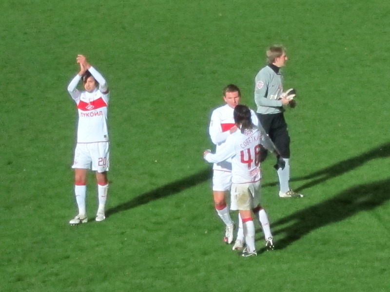 Нагулявшись по городу, поехали в гостишку. Пообедали, после чего мой школьный друг распрощался с нами и поехал на вокзал, а я с Виктором отправились на молодежку. Фанатов Спартака набилось прилично.