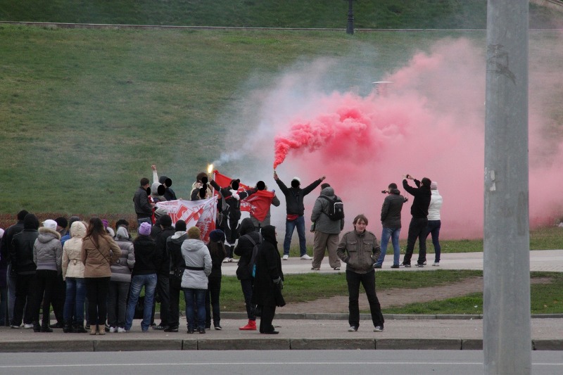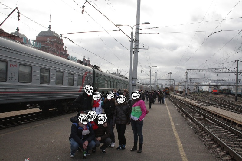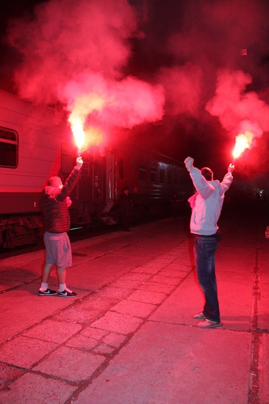 Приехав на станцию, всё мясо высыпало из вагонов. Заряды, пиротехника, всё как обычно. К сожалению, парни приехали на другой перрон, и нас отделяло около трёх поездов. Но заряды с их стороны доносились до нас.