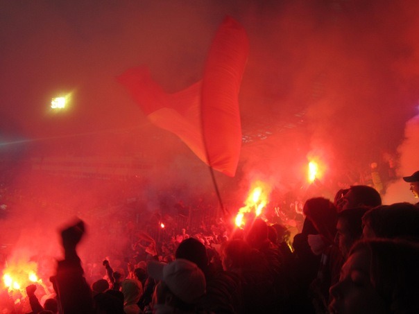 Мне подумалось точно так же. Однако все обошлось. Ни роскошное фаер-шоу, ни громкое заявление, что РФС говно, ни еще пара соженных кресел в конце матча не заставило ОМОН расчехлить свои "шпаги".