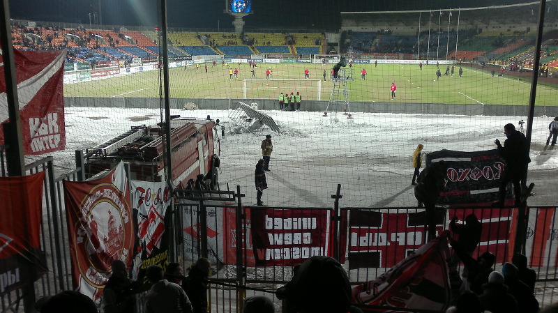 Подойдя к стадику незадолго до начала матча мы еще какое-то время посидели в нашем басе и погрелись, а также оставили вещи.