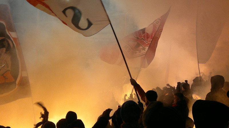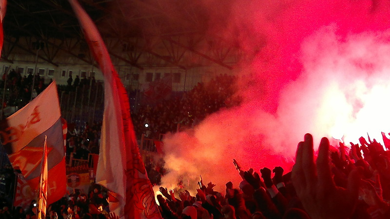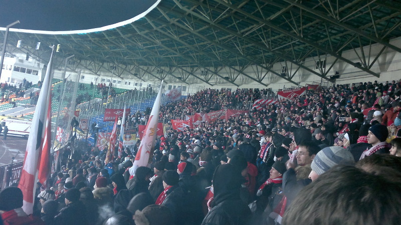 1) Развес тряпок. Впервые фра провела эксперимент и категорически попросила освободить переднюю веранду для московских баннеров, оставив регионам сетки по бокам. Оценивать данное э-э-э-э, не могу подобрать подходящего слова…,ну допустим распоряжение я не буду, хотелось бы только сказать, что лично я, как представитель ростовского кб почувствовал себя немного не уютно, а привкус второсортности до сих пор скрипит на зубах. Да, безусловно, Спартак Московский, НО в первую очередь это НАРОДНАЯ команда, чем и славилась до вчерашнего дня. Сильно большой разницы между тем, что получилось и допустим прошлым годом я не заметил, тогда их было тупо больше, и добиться какой-то слаженности или одностильности или цветности, по-моему не удалось. Ну а то, что к середине второго тайма развес поредел в шахматном порядке, это вообще ни в какие ворота. Как же так москвичи? Вам доверено такое почетное место, а вы его вот так, с легкостью дырявите. Не хорошо. Понятно, что нужно было успеть на последний поезд, но вам же доверили представлять весь движ, так делайте это до конца. Тем же регионам значительно труднее добираться на такие выезды как, например казань. Ну да ладно, посмотрим, что из этого всего выйдет дальше)))
