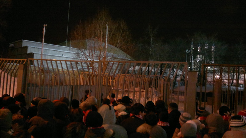 После окончания матча выпустили достаточно быстро с трибуны, но……внимание, опять новинка, не со стадиона, и где-то порядка 10 минут держали на холоде перед закрытыми воротами