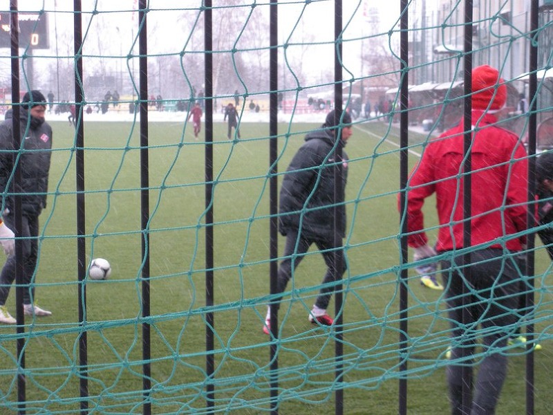 Ну что же, не объяснить людям со следом от фуражки на голове, что и почему нам нужна была центральная трибуна. Предстояло обойти помещение, где расположены раздевалки команд и подойти к входу … на резервное поле! О, Господи, почему же вы, “товарищи” серые, не сказали, что играем немного в другом месте, и там НЕТ центральной трибуны.… Пришлось выбирать место на краю фанатки, прямо возле спецназовцев. Отмечу, что их было немалое количество, ибо, видимо по их задумке, московские поклонники футбола должны были заряжать заряды политического содержания. Но таковых не было потому, что всё межсезонье только и были разговоры как бы пережить нашествие данного политика. А теперь футбол! Пусть и молодёжный! Вот несколько фото. За качество прошу прощения.