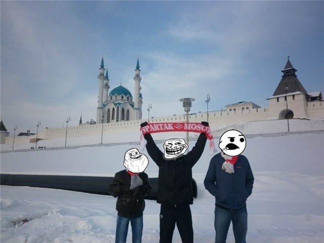 Раньше всех выезд начался именно для Бяки и Barmoleu. Примерно в 11 часов вечера наши ведущие сели на поезд Москва – Казань и отправились покорять столицу Татарстана в компании своих друзей, пробивших ни один десяток выездов. Дорога у наших московских коллег выдалась весёлой. Казалось, что самым трудным будет найти друг друга уже в самом поезде, но эта проблема обошла их стороной, т.к. места оказались достаточно рядом, хоть и без перемещений по вагону было не обойтись. В итоге, заняв удобные места, ребята раскупорили запасы успокоительно-горячительных напитков и преступили к празднованию очередного выезда за “Спартак”. Казань для всех, за исключением Barmoleu, была уже не первой. Но это не мешало нашим соратникам радоваться приближению атмосферы большого футбола, горящих секторов, баннеров, вписок и много другого. Как принято в такой компании, места для сна не находится абсолютно потому, что уже на станции “Вековка” обязательно нужно было отправится на улицу и поучаствовать в знаменательном фаер-шоу! Само собой, заряд, полученный на пятиградусном морозе, только раззадорил публику, и молодая красно-белая кровь требовала больше хлеба и зрелищ! Чтобы хоть как-то утихомирить довольных фанатов, некультурная проводница, изначально провоцирующая красно-белых на куда более жёсткое поведение, пригласила в вагон отряд киборгов с аббревиатурой на спине ОПОН (Отряд Пошлых Опущенных Нулей) для разговора с пользователями сферы услуг РЖД. Хорошо, что не сработала установка в чипах этих мутантов устроить “разнос на поражение” подручными предметами в виде дубинок и прочего. Если уж поклонников московской команды не могут сломить многочисленные переносы места и начала матча, то действия (а точнее их уговоры пройти поспать на свои места) органов правопорядка представляются пустяком. Уснула наша московская бригада лишь часам к двум-трём ночи. Но и то она была недолгой. Семья в составе от 4 до 6 человек (точную цифру никто не знает, ибо к нашим ребятам подходило с жалобами много человек), чей основной контингент составляли женщины и дети, на экваторе ночи взбудоражили весь вагон своей экстренной посадкой на одной из станций. Вот тут то ОПОН и прочие службы безопасности нужны были ох как! Да Бог с ними, с этой высадкой, вышли и всё, казалось бы. Но нет же, опечаток в выездной жизни всех кб вагона номер 11 это точно должно оставить. Сон как рукой сняло! И так до самой Казани. Повезло лишь тем, кто успел днём устать и отключиться в мгновение ока.