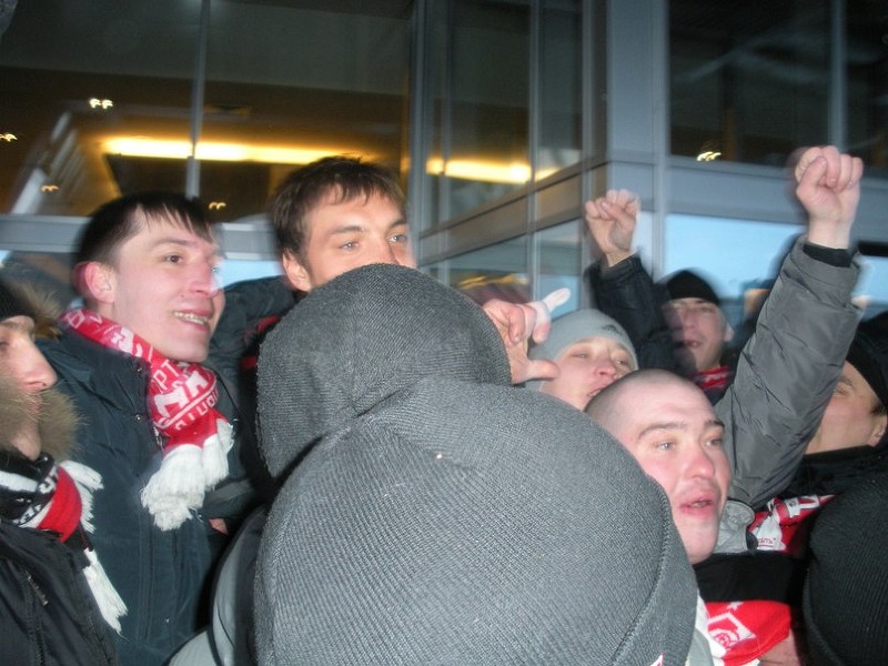 Выход с сектора занял порядка сорока минут, за которые мы успели немного подмёрзнуть. Оказавшись на улице, принялись ждать сначала автобус, а затем, поняв, что из этого ничего хорошего не выйдет, ловили машину. На остановке мы повстречали несколько болельщиков “Рубина”, чуть ли не впервые за этот день, которые убеждали спартачей в том, что казанская команда лучше, т.к. “Спартак”, якобы, не обыгрывал “Барселону”. Само собой, у нас нашлось что ответить данному псевдоисторику. В момент разговора выяснилось, что ранее он переживал за красно-белых и его любимым игроком был Сергей Родионов, но из-за того, что в начале нулевых основная масса футболистов покинула наш клуб, он перебрался на сторону местной команды, за которую болеет и по сей день, исключительно из-за двух чемпионств. Вот он, основной контингент местного фанатья. Гоняйте на выезда, в Москве подобного вряд ли увидишь.