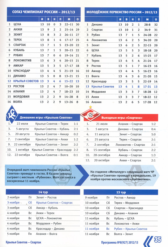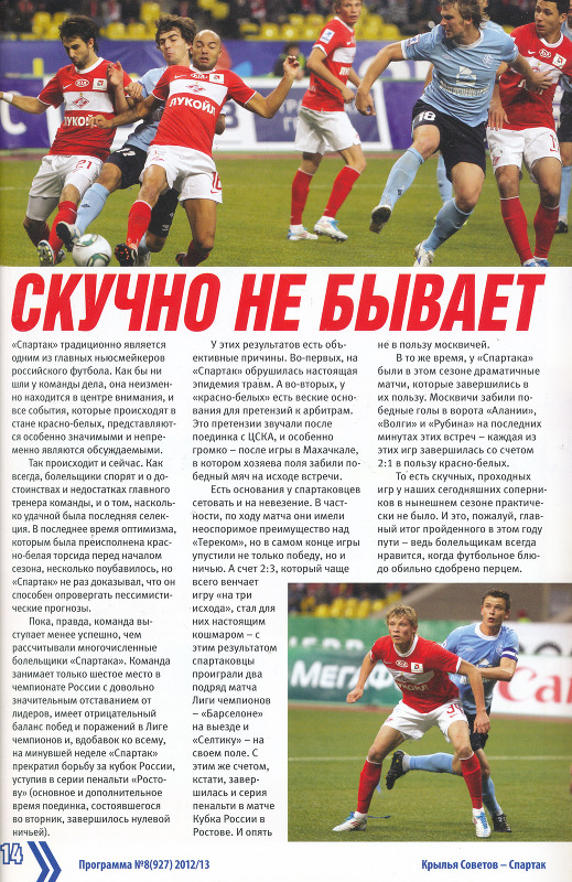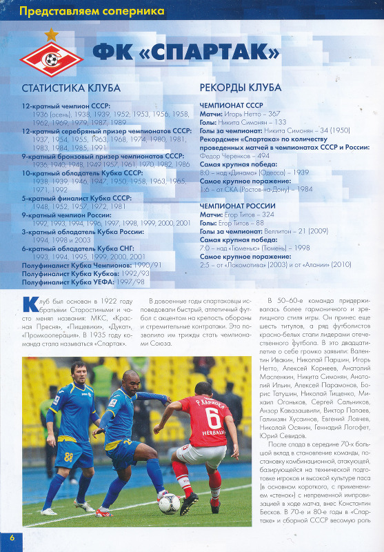 В программке к матчу, кроме состава команд, «Спартаку» был посвящен один разворот, на котором была напечатана статистика представленная официальным сайтом нашей команды.
