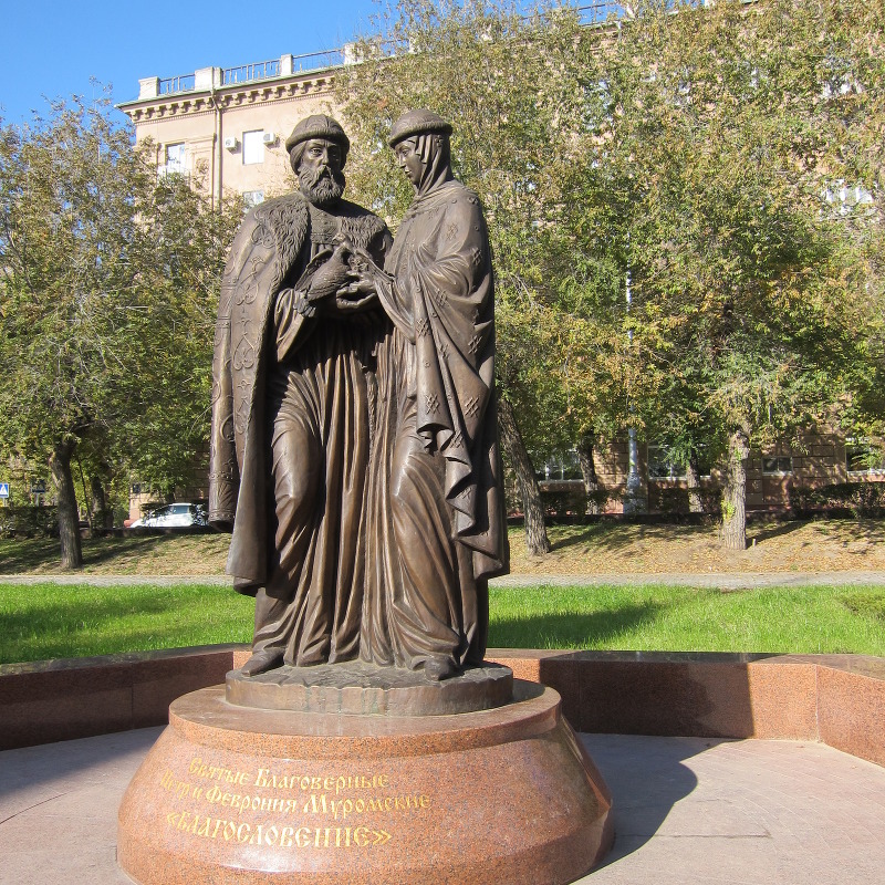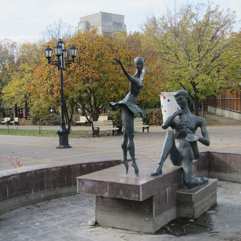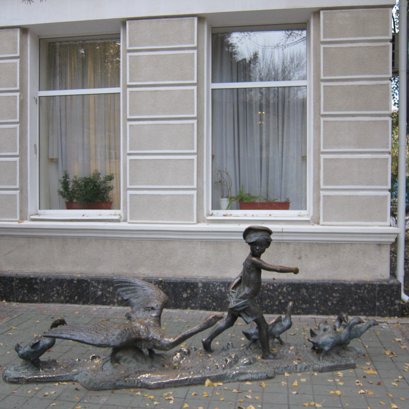 Памятники литературным героям: «Дед Щукарь», а напротив него - «Нахалёнок».