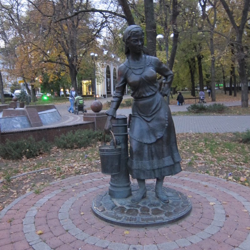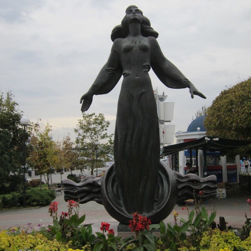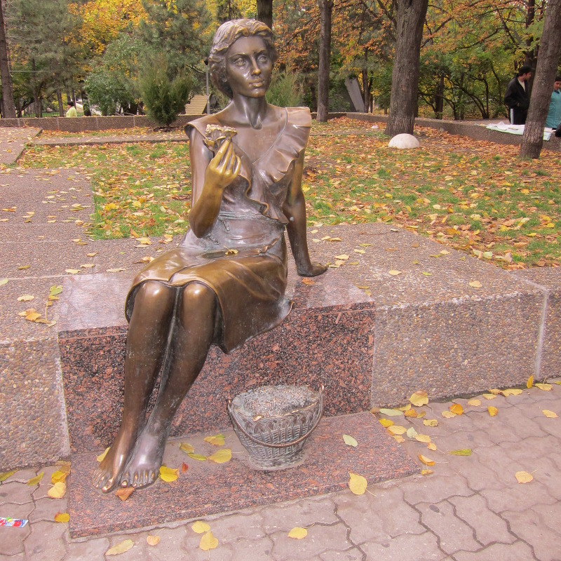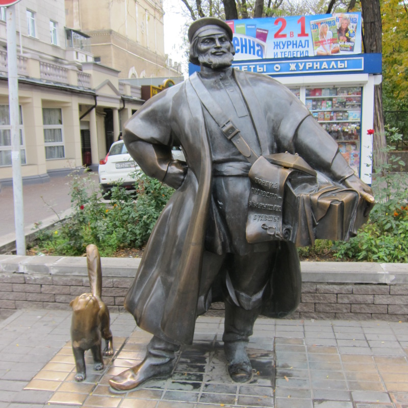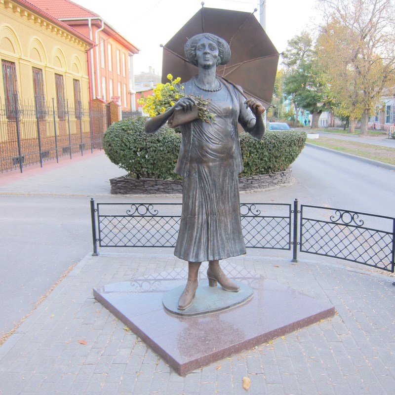 Да это же Фаина Раневская. Её роли в «Подкидыше» и «Золушке» знает наверно каждый. Именно она озвучила Фрекен Бок в мультфильме про Малыша и Карлсона. Тоже является уроженкой города Таганрог. Теперь гуляет по одной из центральных улиц под зонтиком, а кто-то даже вручил ей букет. Только не подумайте, что это сделал я. Её знаменитую фразу: «Пионеры, идете в …опу», я ей никогда не прощу