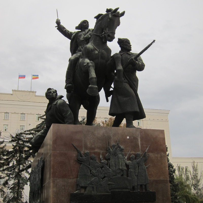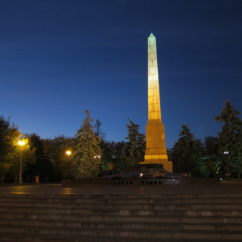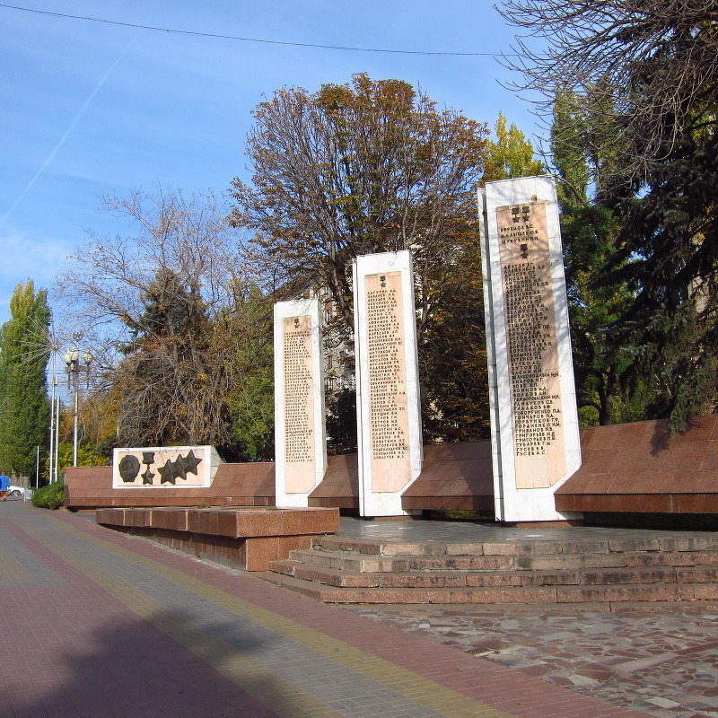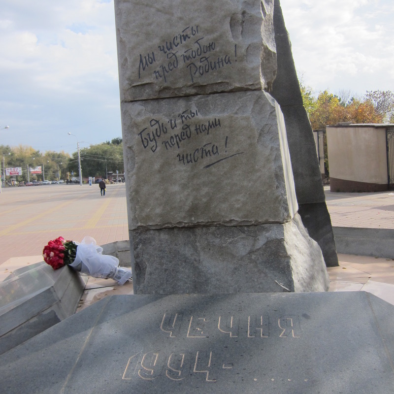 Интересный памятник на площади Защитников Отечества. Одна из сторон посвящена войне в Чечне.
