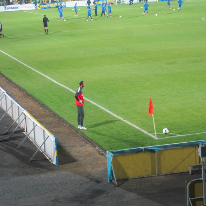 Перед началом матча наш основной вратарь Дикань был в роли игрока разыгрывающего угловой удар. Мы зарядили ему «Дикань», в ответ он нам похлопал.