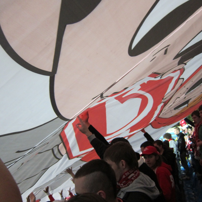 Наконец матч начался. На нашем секторе сверху вниз побежала громадная растяжка.