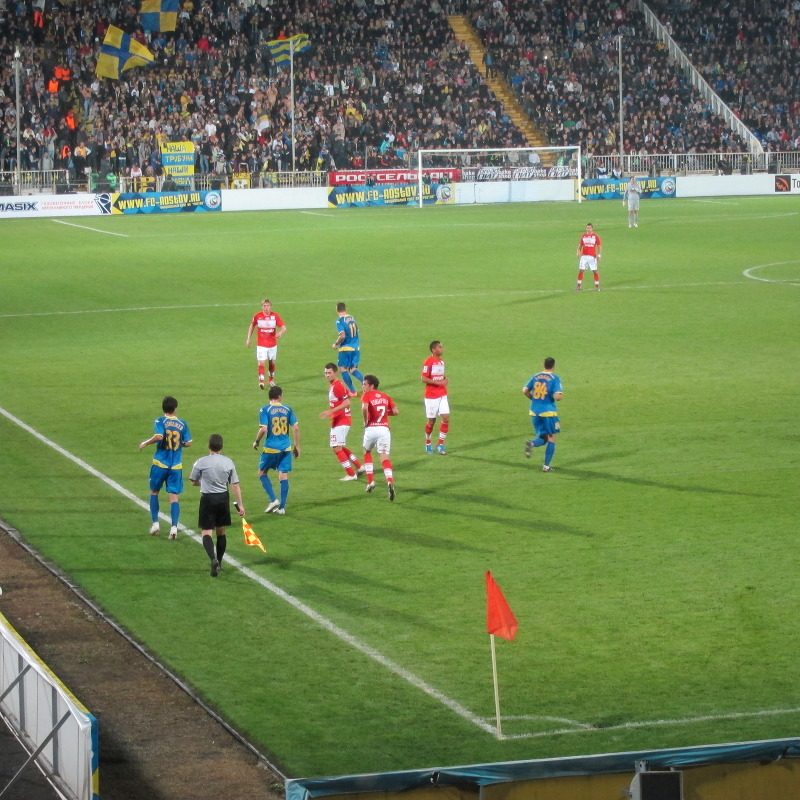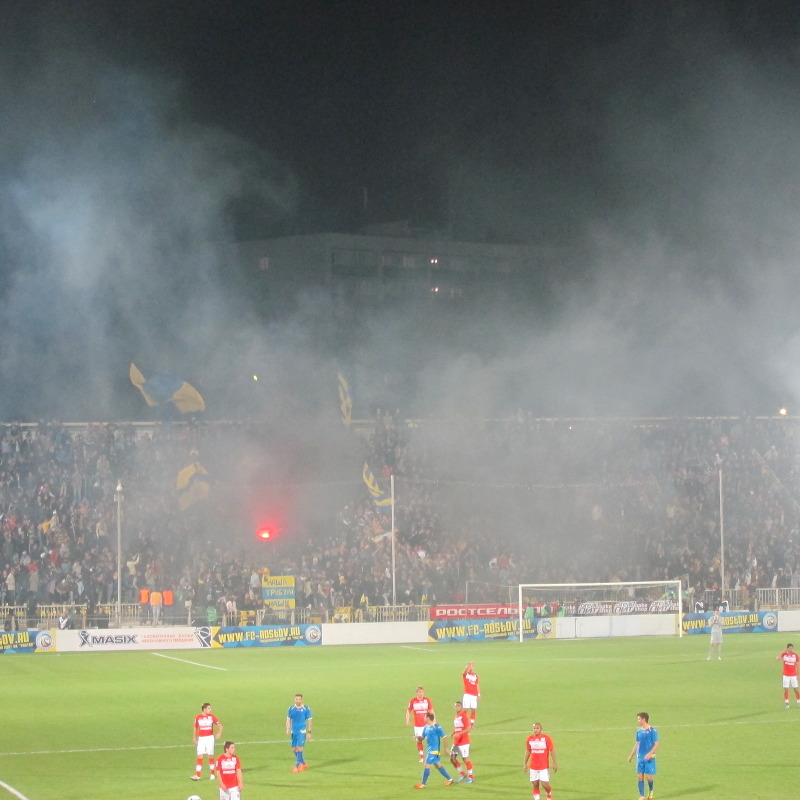 Болельщиков нашей команды набралось всего на один сектор. Ростовчан было заметно больше, тем более, что по слухам, на трибуну за воротами на этот матч их пускали бесплатно.