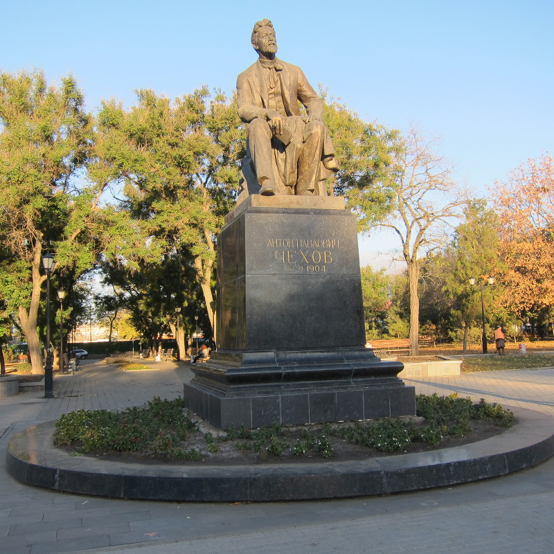 Ну, а ещё он известен потому, что именно в нём родился известный русский писатель Антон Павлович Чехов. Именно ему, а также героям его произведений, посвящено в Таганроге большинство памятников и музеев.