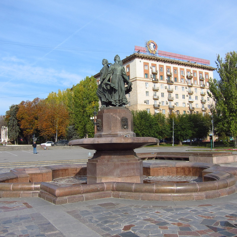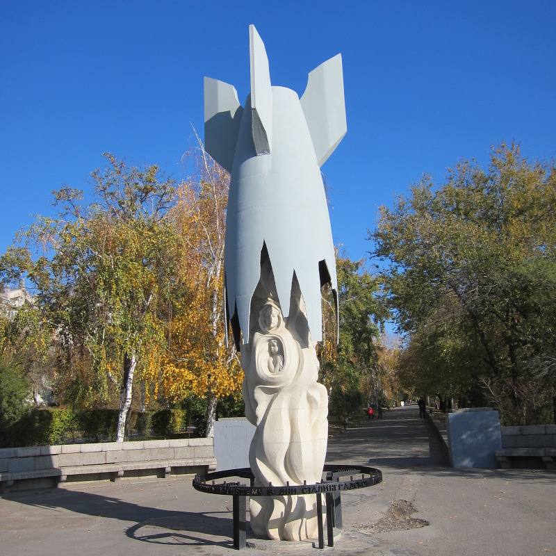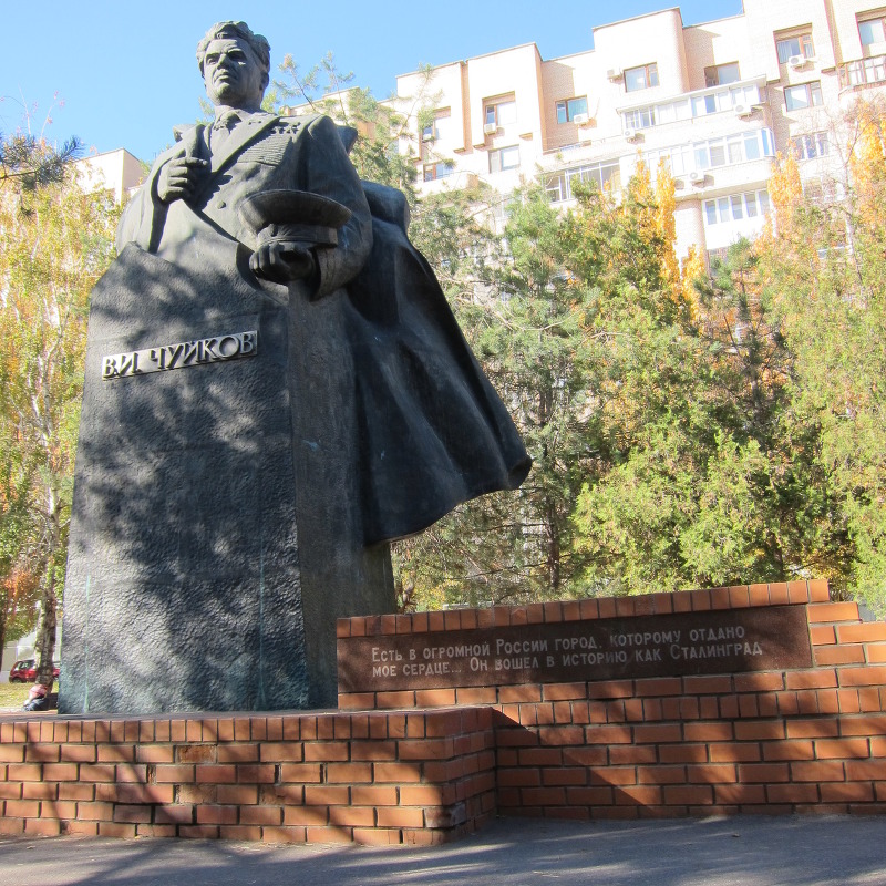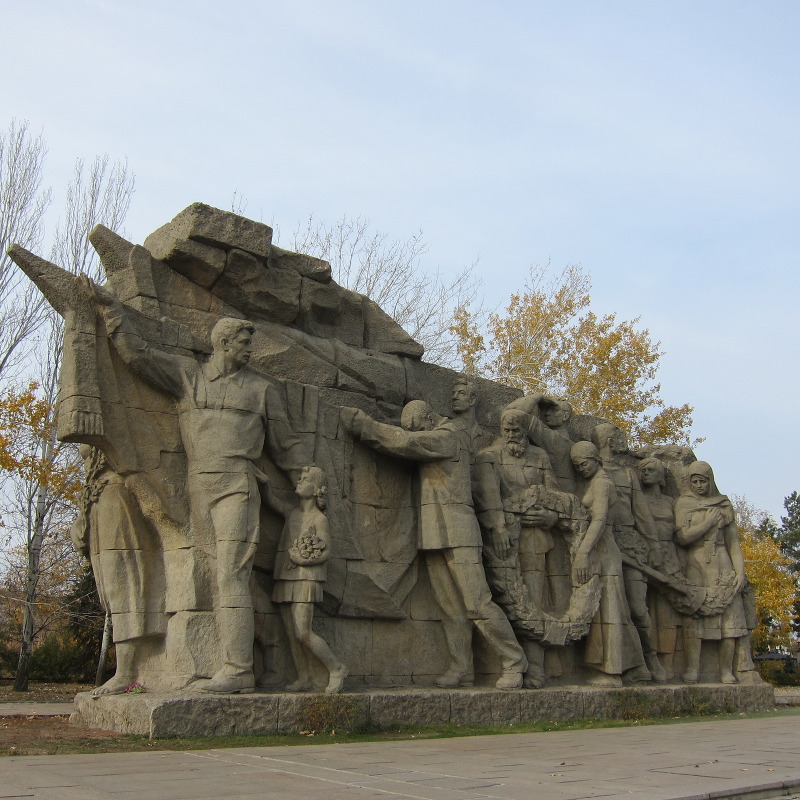 Памятник мирным жителям, погибшим в Сталинградской битве. Далее по набережной памятник Чуйкову.