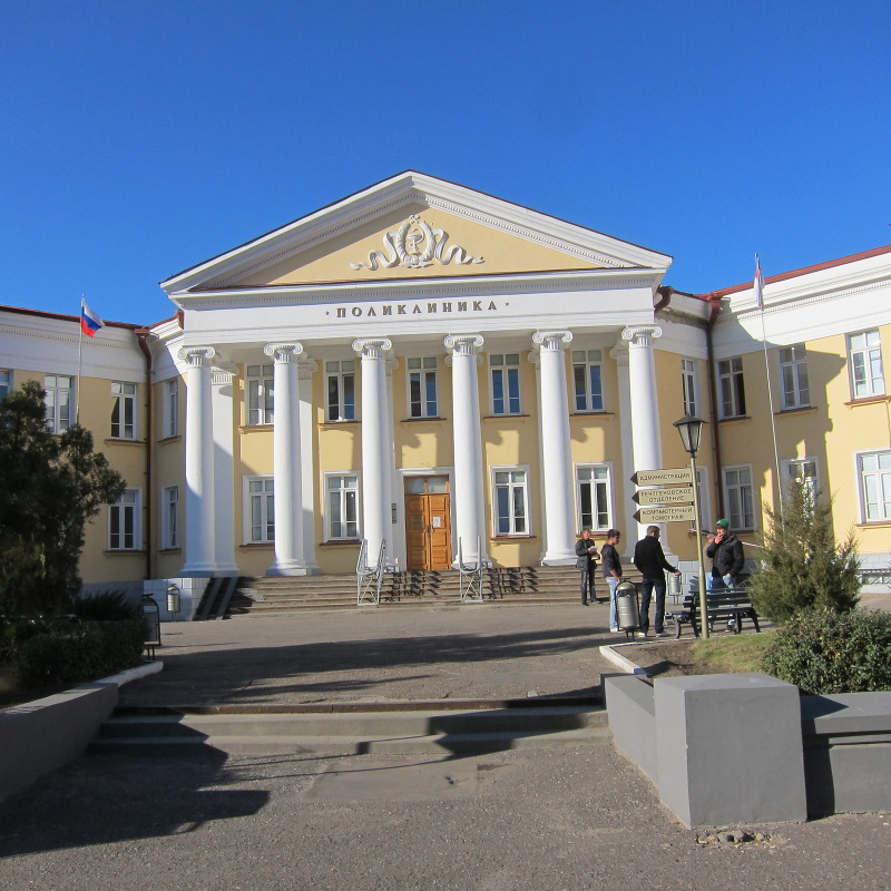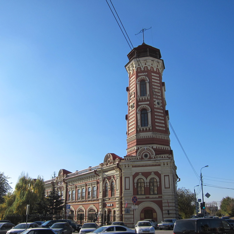 Первая пожарная часть города. Рядом с ней, через дорогу поликлиника №1.