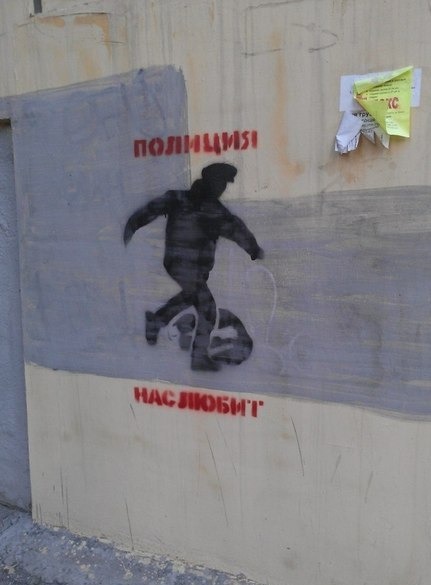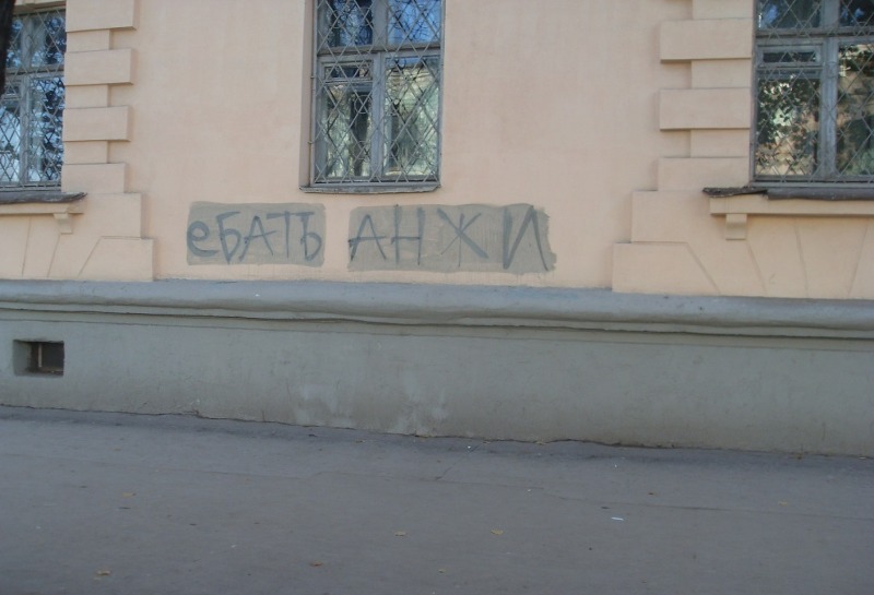 Недалеко от стадиона в глаза бросилась ещё одна надпись.