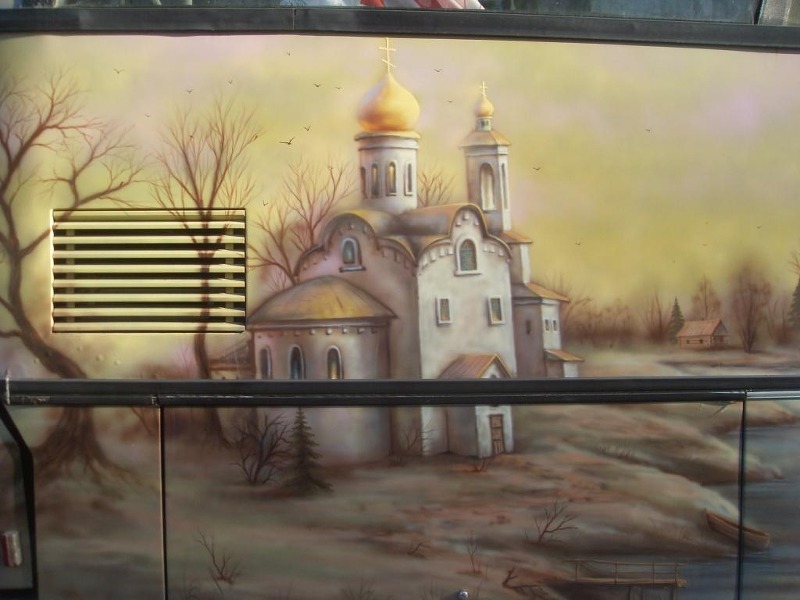 Вокруг стадиона стояло множество выездного транспорта, но один автобус выделялся среди других красивейшей аэрографией.