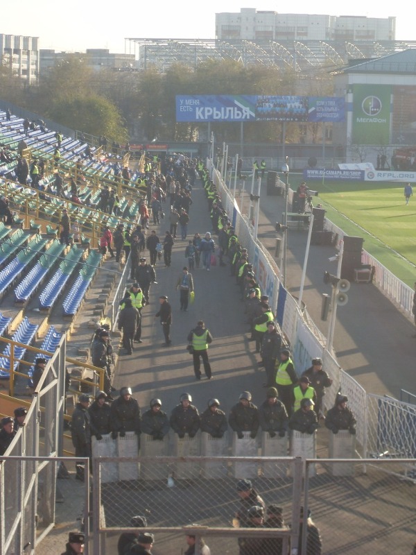 Около каждого кафе (ресторана, гастронома) стояли огромные очереди, состоящие в основном из приезжих болельщиков «Спартака». В одной из таких очередей мы встретили М., старого знакомого из ростовского пригорода. Рассказанные им перипетии выезда казались настолько невероятными, что я уж и не вспомню всех его подробностей. Уже на подходе к стадиону я встретил ещё одного земляка, таганрожца В. Они с женой решили провести в Самаре пару выходных, совместив приятное с полезным (отдых в новом для себя городе с поддержкой любимой команды на выезде, ну или наоборот).