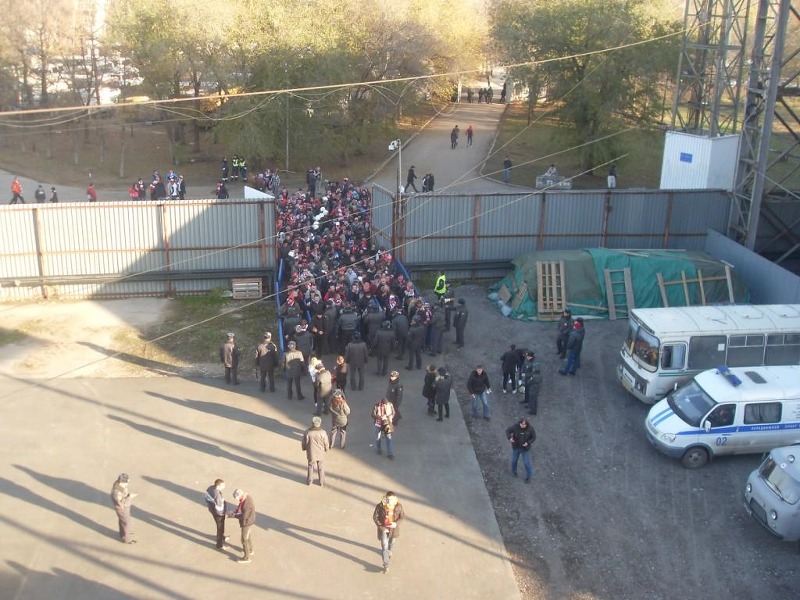 Голосовой диссонанс был ужасающим. Ребята с задних рядов не слышали звук мегафона и брали инициативу в свои руки. Апогеем всего этого действа стало развесёлое «О.У.К.Б.» Самарские фанаты могли бы резонно обидеться, услышав такое. Но благо, их в тот день на «Металлурге» не было по причине бойкота.