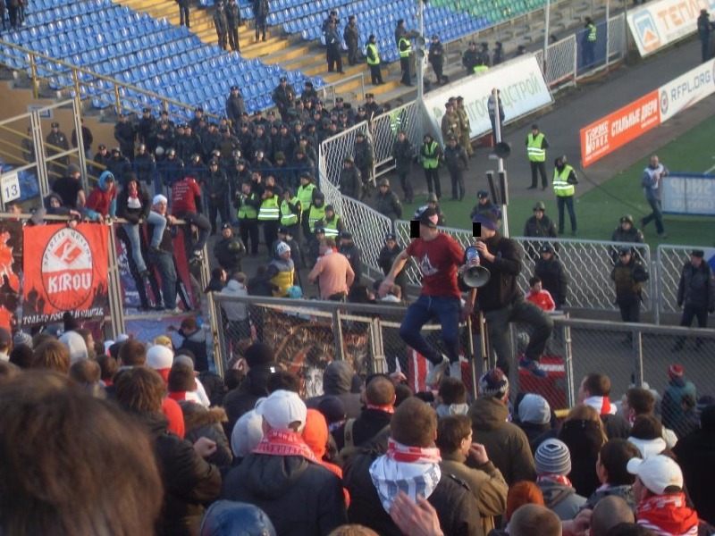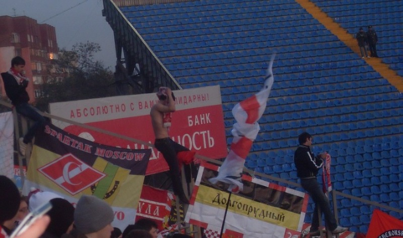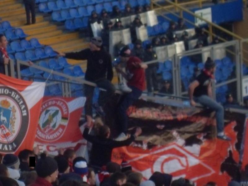 Разброд и шатания на секторе (да и в целом, в красно-белом фанатском движе) стали привычной картиной. Вот и на этот раз наши «высоко парящие над всеми остальными» коллеги из некоторых московских фирм не удосужились привезти на выезд барабан, хотя ребята одного из региональных движей предлагали свою помощь в этом вопросе. Но, по-видимому, возымел действие принцип «Никто, кроме нас». Вдобавок ко всему, мегафон появился на секторе только по ходу первого тайма.