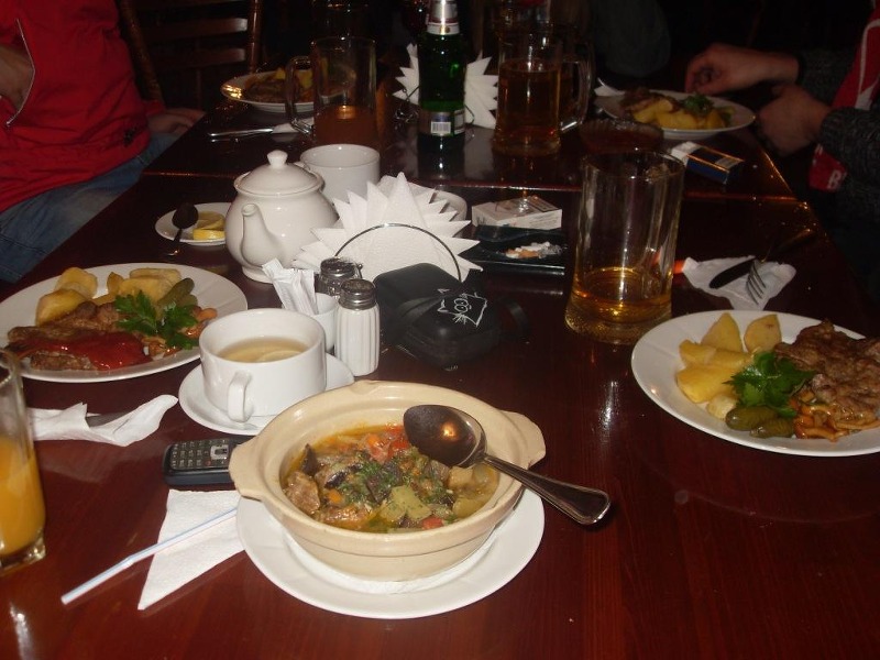 мы покинули территорию стадиона. К вечеру похолодало, поэтому прогулке по городу мы предпочли ужин в заведении «Жили-были».
