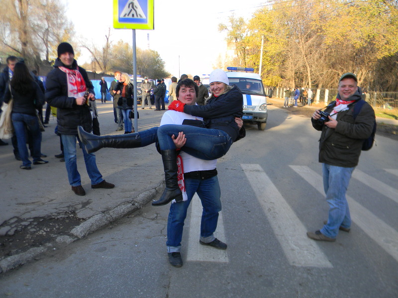 Молодым надо было на поезд, а мы с Сектором отправились в гостиницу. Сначала мы хотели спать, но потом решили пойти перекусить. Поиски ресторана в Матрёшке успехом не увенчались, в ближайшем кабаке был банкет, но недалеко мы все-таки нашли пиццерию, в которой, взглянув на наши розы, нам объявили, что мест нет. Но мы внаглую сели за свободный стол, объяснив, что таблички «rezerved» на нем нет. Заказали пиццу и водки, а Сектор зачем-то добавил еще и пиво. Вечер прошел в беседах о футболе, было очень мило и душевно. В Самаре мы с Сектором увиделись во второй раз в жизни, но понимали друг друга с полуслова. Таких людей нечасто встретишь. Спасибо тебе, Ден, за компанию на этом выезде.