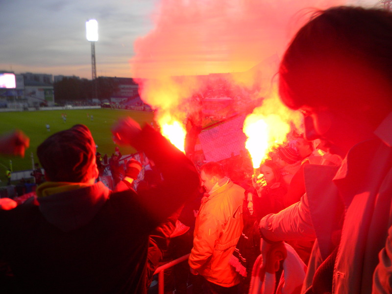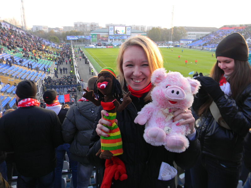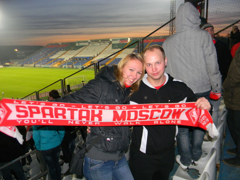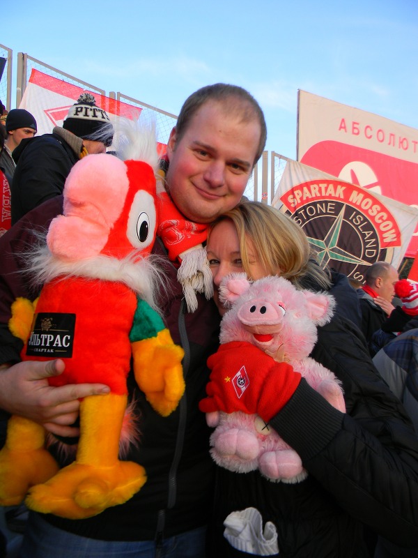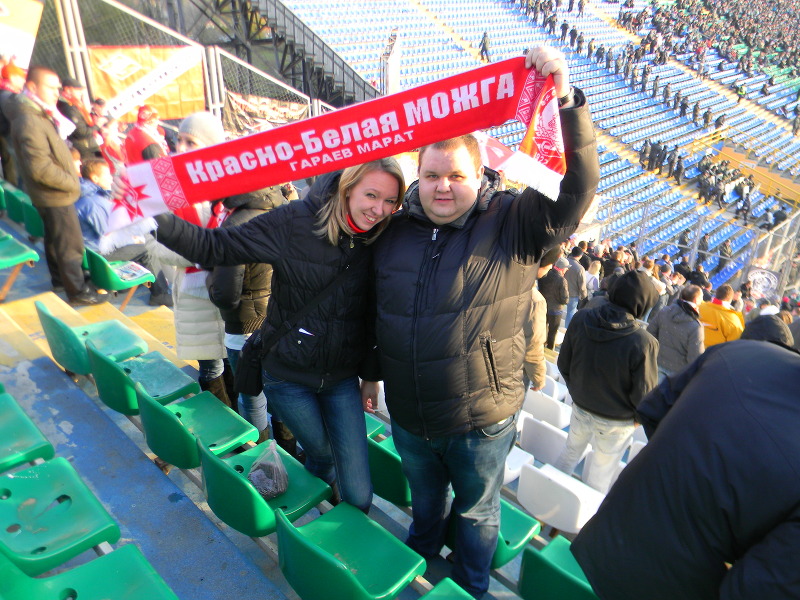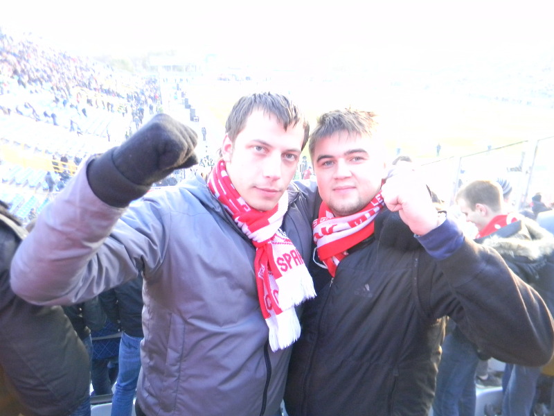 Второй кордон с турникетами был еще адовей, билет надо было держать секунд 10-15 пока не сработает штрих-код. Спасибо моему новому знакомому Андрею (опять из Перми, что бы это значило), который держал меня за ручки и не дал погибнуть в этой давке и вообще остаться одной, т.к. к тому моменту все мы друг друга потеряли. На сектор зашли минуте на 5-той матча. Спустя 2 года наконец-то снова встретила почитателя моих отчетов Марата.