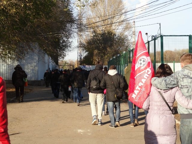 К сожалению, из-за поисков гостиницы, время оставалось мало и мы поспешили на стадион. Удивительно, но как мы не голосовали, машины не останавливались. Как нам пояснили местные жители – сняли бы вы шарфики, это из-за них. Естественно, розы никто снимать не собирался, уже принципиально. В итоге, с горем пополам, мы поймали две машины и домчались до стадиона. С билетами на сектор проблем не было, через 5 минут они были у нас в руках.