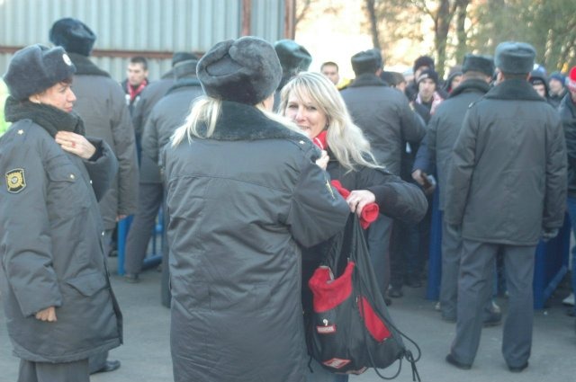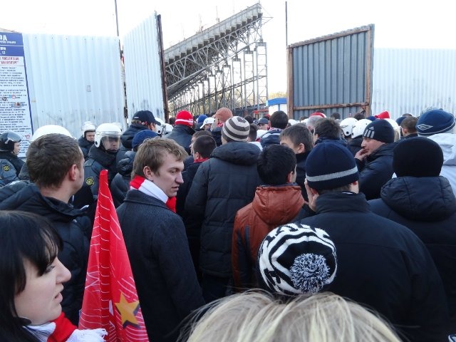 Красно-белых столпилось на входе достаточно много, но каким-то чудом нам удалось просочиться быстро через оба кордона.